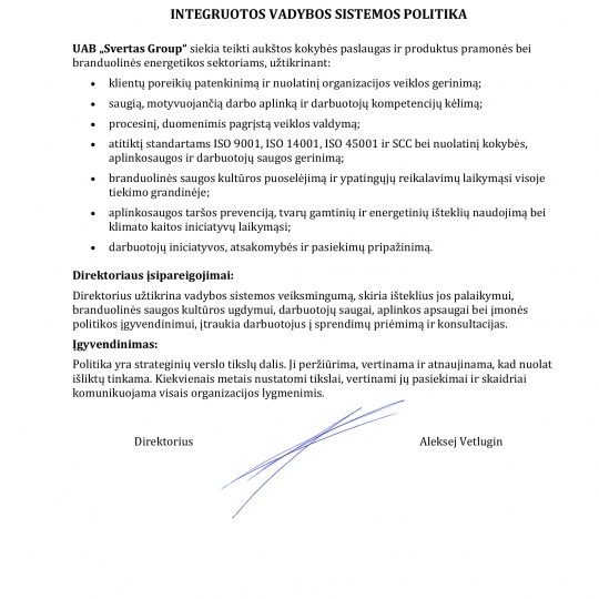UAB „Svertas Group“ turi Valstybinės Lietuvos energetikos reguliavimo tarnybos (VERT) atestatus sekančioms veikloms: